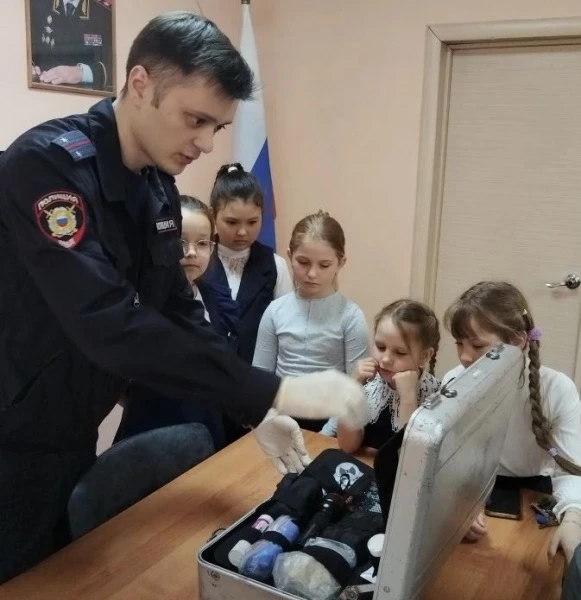 Особый интерес у гостей вызвала встреча с экспертом-криминалистом. Но самым захватывающим моментом стала практическая часть. Ребятам дали возможность не только посмотреть, но и подержать в руках специальные средства, состоящие на вооружении полиции.