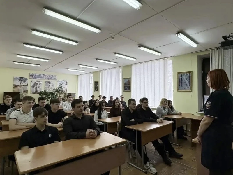 В Политехническом техникуме Биробиджана состоялся урок безопасности, который провела старший инспектор подразделения по делам несовершеннолетних майор полиции Татьяна Головина.