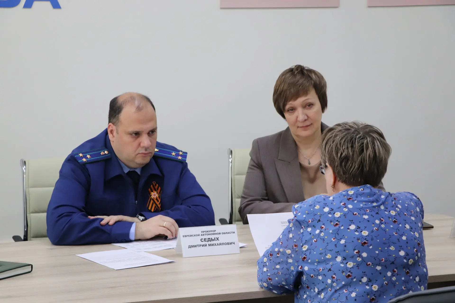 Сегодня, 28 апреля 2026 года, прокурор Еврейской автономной области Дмитрий Седых с участием военного прокурора Биробиджанского гарнизона Кирилла Мезенцева, руководителя филиала Государственного Фонда поддержки участников специальной военной операции «Защитники Отечества» по ЕАО Елены Колобовой провёл приём участников специальной военной операции и членов их семей.