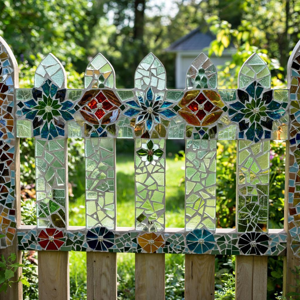 Если желание украсить забор включает не только цвет, но и текстурные аспекты, стоит обратить внимание на мозаику. Не стоит торопиться выбрасывать битую плитку или старую посуду — это прекрасный материал для создания ярких панно. Вы можете выбрать любой сюжет: от простых геометрических узоров до более сложных картин. Работа выполняется просто: на заборе намечается рисунок, затем на него наносится плиточный клей, и фрагменты мозаики выкладываются по заранее намеченному плану. Между элементами обязательно оставляйте зазоры, которые впоследствии заполняются затиркой. Этот трудоемкий процесс обязательно окупится результатом, ведь игра красок и текстур сделает забор настоящим произведением искусства.