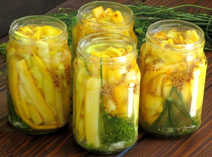 Кабачки, замаринованные в остром горчичном маринаде, — это нечто большее, чем привычные соленья. Янтарные, сочные и хрустящие дольки в сладко-кислом соусе привносят совершенно новый вкус в традиционные закуски. Этот год принес обновленные рецепты, которые точно завоюют сердца кулинаров.