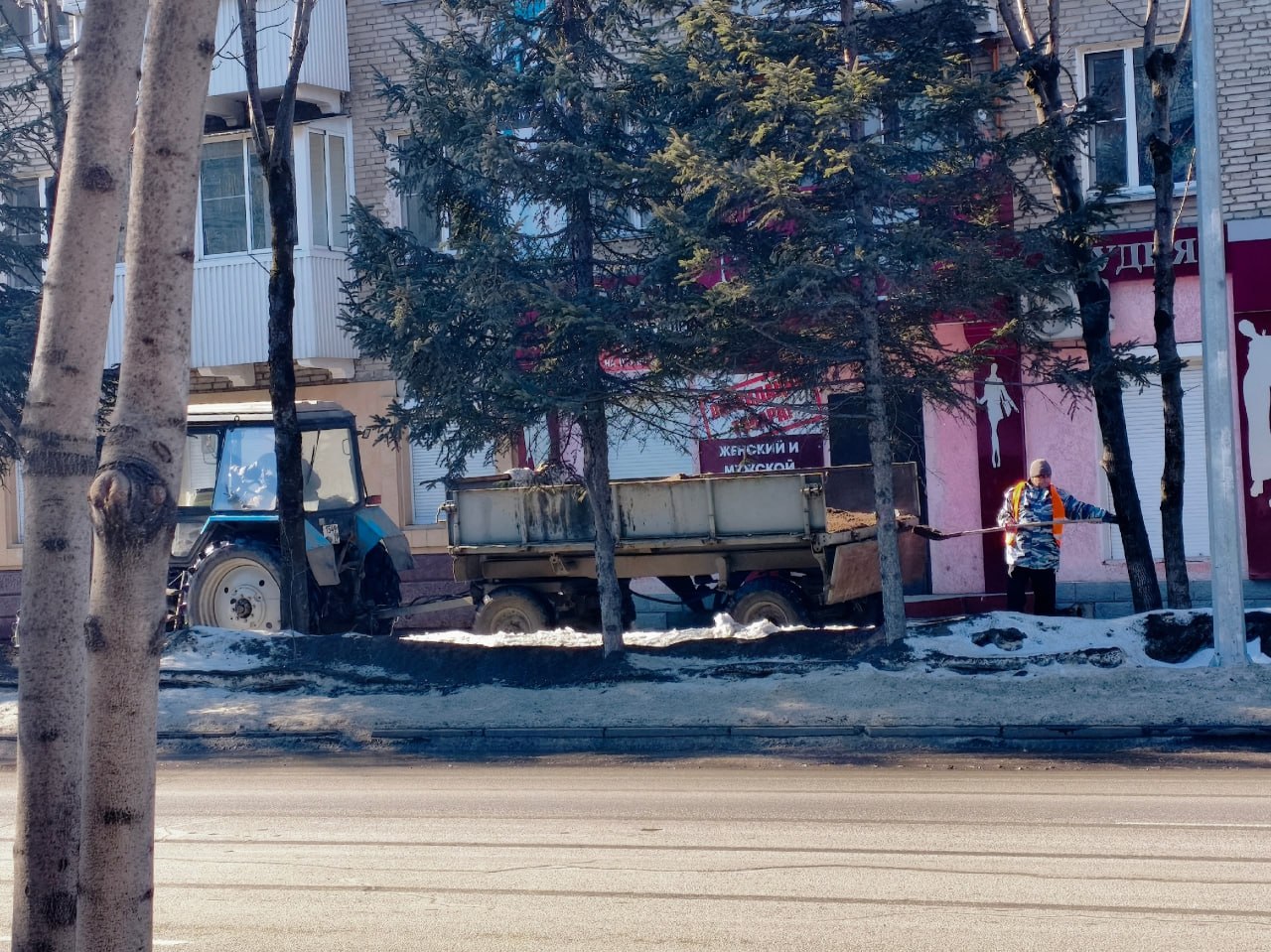 Две машины заняты подсыпкой улиц пескосоляной смесью по следующим адресам: ул. Советская, Волочаевская, Кубанская, Миллера, Дзержинского. Два трактора МТЗ с тележками также занимаются подсыпкой пешеходных тротуаров. Обработка ведётся на улице Пионерской и Шолом-Алейхема — здесь ежедневно проходит большое количество людей, поэтому безопасность этих зон под особым контролем.