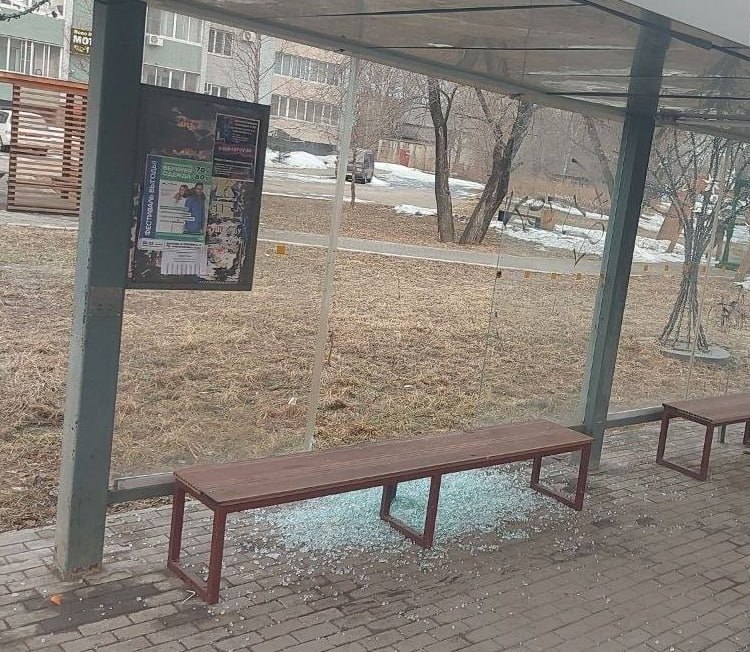 Неизвестные разбили стекло на остановочном павильоне Биробиджана