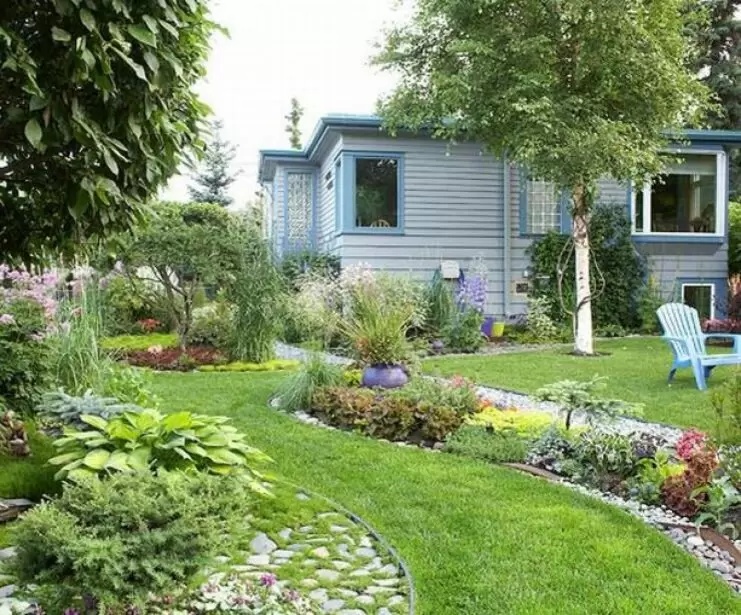 Одним из главных элементов оформления остаются садовые дорожки, которые помогают разделять зоны и направлять движение по участку. Основная дорожка может быть прямой или извивающейся в зависимости от выбранного стиля.