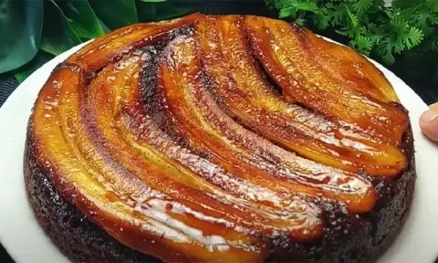 Данный десерт просто в приготовлении: надо карамелизовать бананы и залить их шоколадным тестом, запекаем на сковороде под крышкой. После 25 минут на медленном огне вы получите воздушный и ароматный десерт, который можно подавать с ягодами, сливками или мороженым.