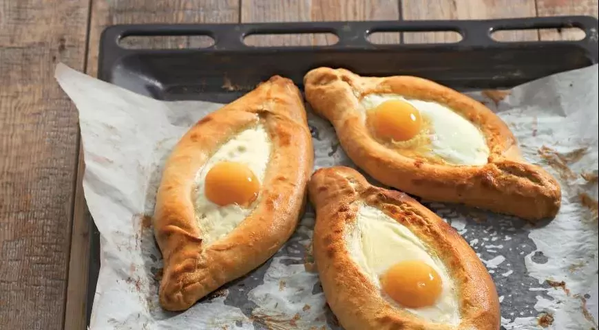 Выпекайте хачапури при температуре 220 градусов около 15 минут. Затем в каждую «лодочку» аккуратно вбейте яйцо и верните в духовку на пару минут — пусть белок схватится, а желток останется мягким и кремовым.