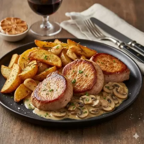 Медальоны из свинины в сливочно-грибном соусе