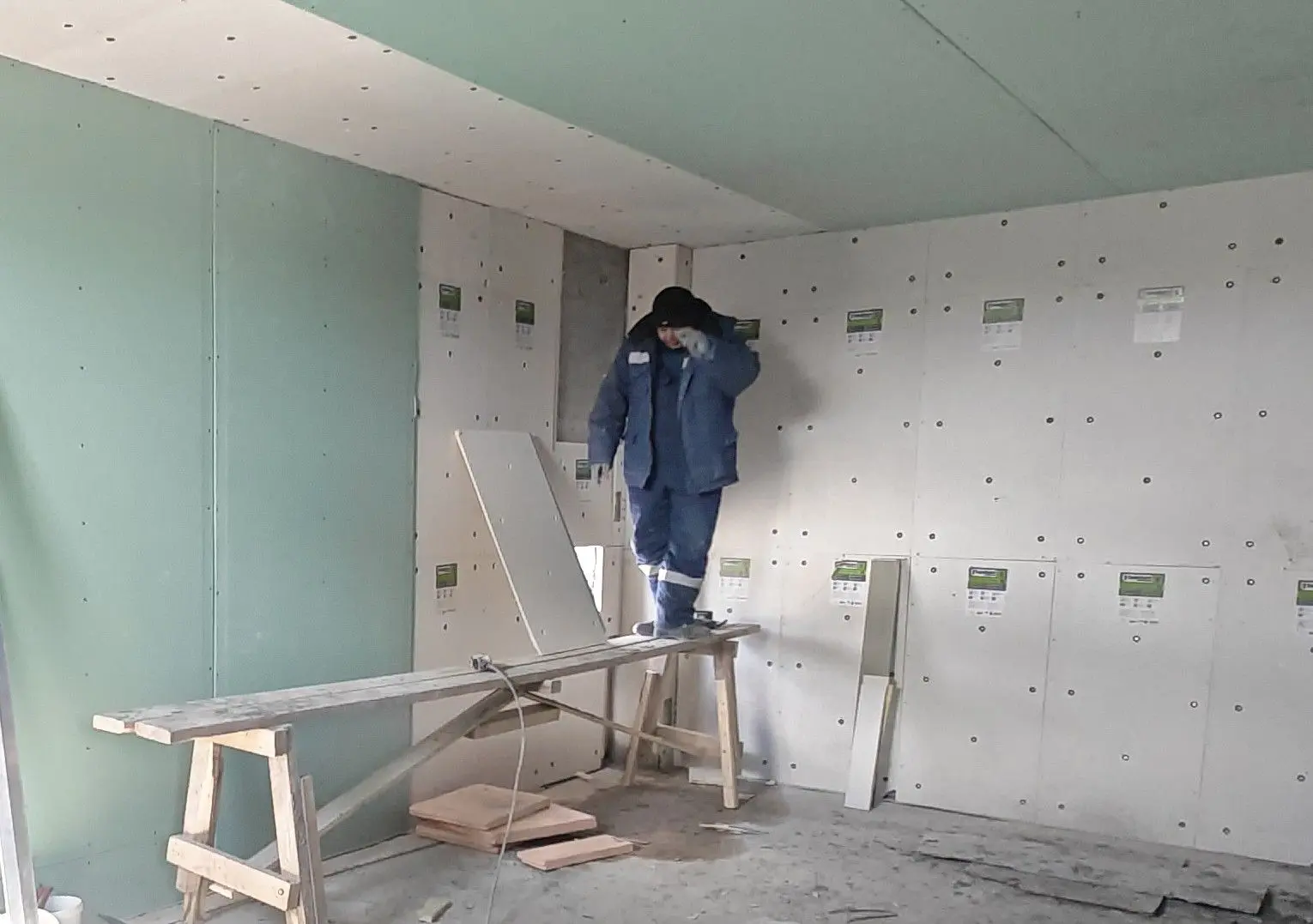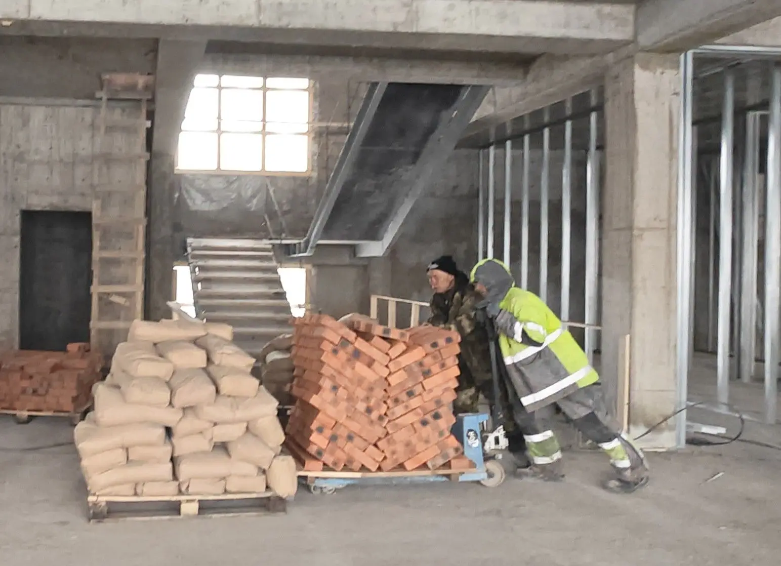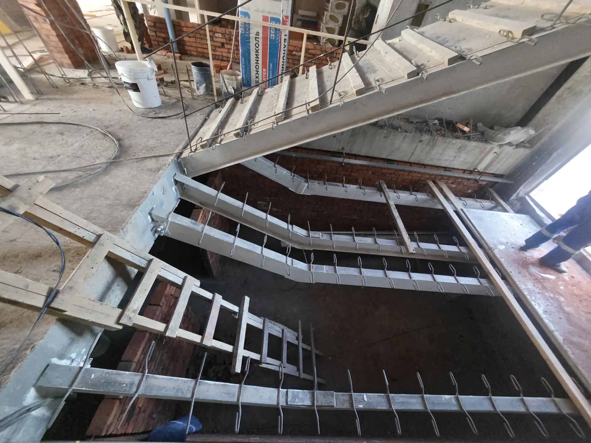 На первых двух этажах выполнено зонирование, сейчас такие же работы идут на третьем. Параллельно рабочие ведут монтаж лифта, систем отопления, электроснабжения и вентиляции.