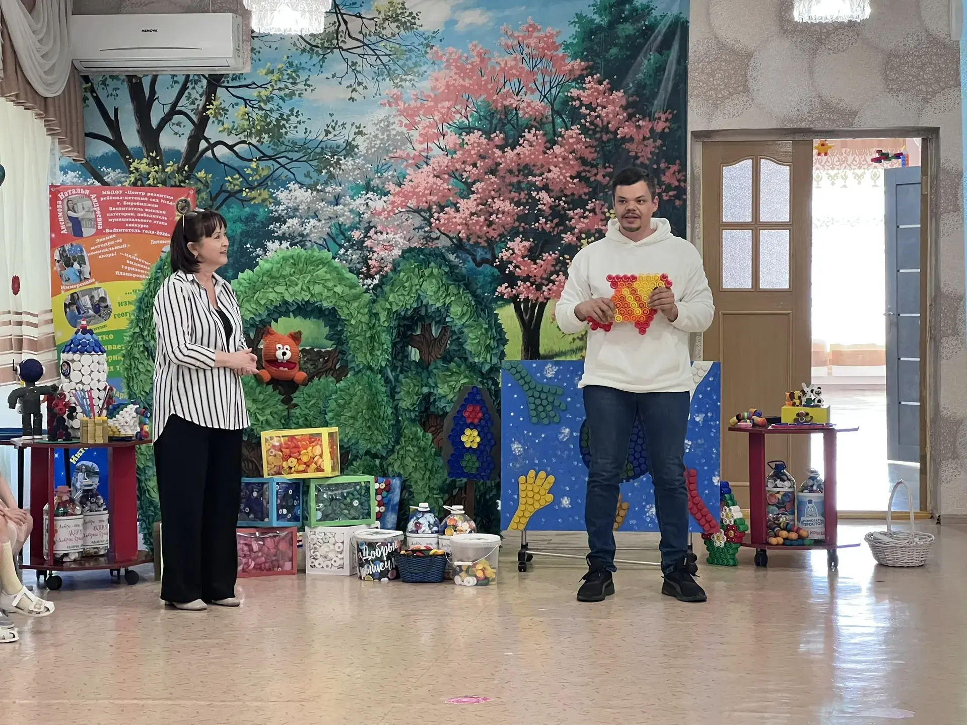 В гостях у малышей биробиджанского детсада побывал Александр Музыка, председатель движения «Биробиджан молодой». Для малышей воспитатели провели настоящее познавательное занятие: рассказали, почему пластиковые крышки не должны валяться в мусоре, как они помогают рекам и рыбкам.