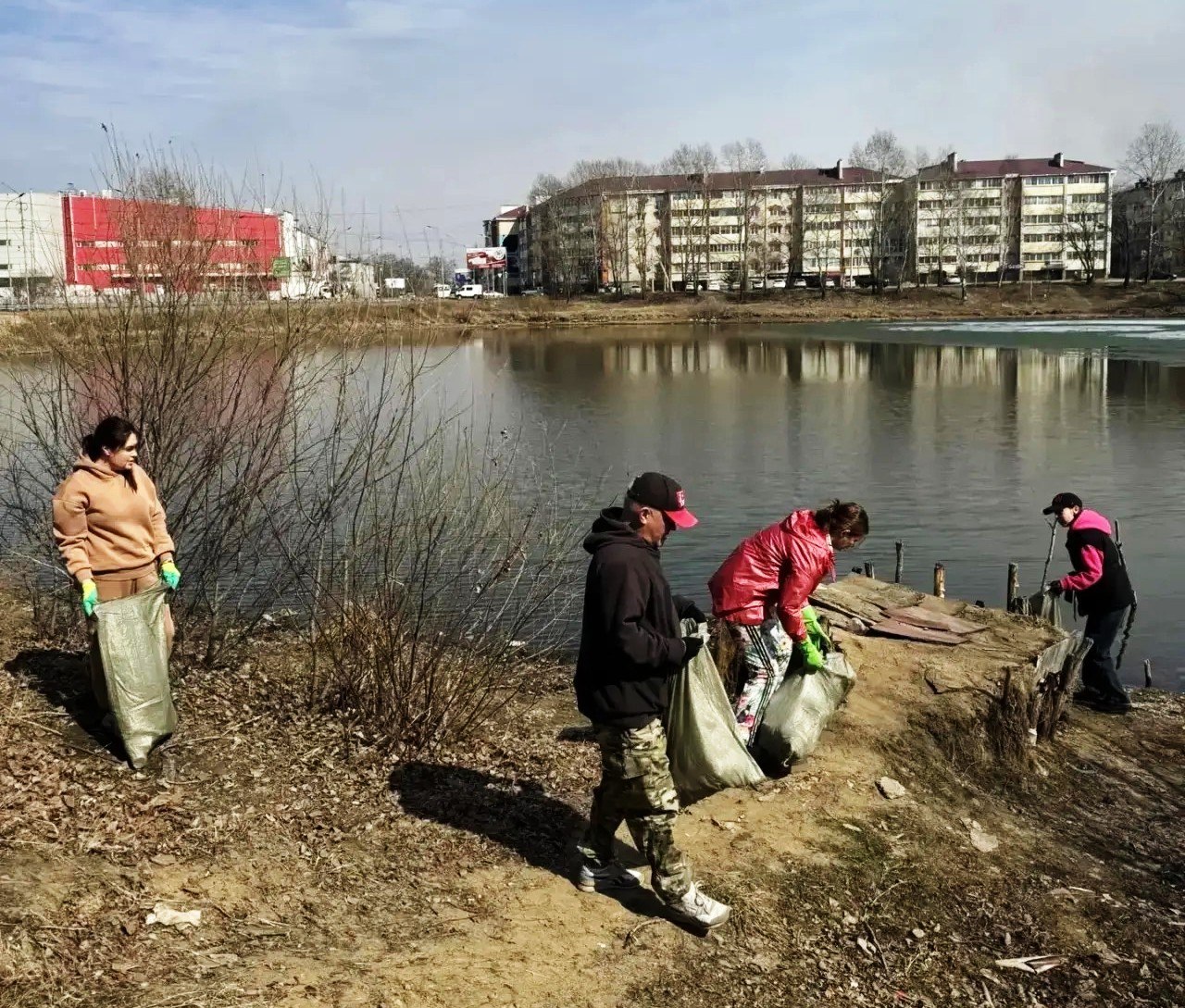 Залив Невский со стороны зоны отдыха – Сотрудники Нижнеленинского таможенного поста Хабаровской таможни и студенты ПГУ им. Шолом-Алейхема трудились на заливе Невском. Здесь привели в порядок зеленую зону