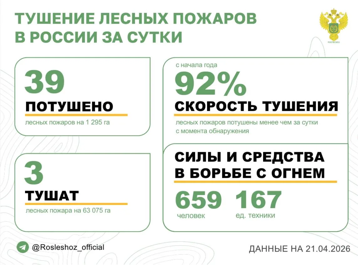 Оперативность тушения - с начала года 92% всех лесных пожаров ликвидированы менее чем за сутки с момента обнаружения.
