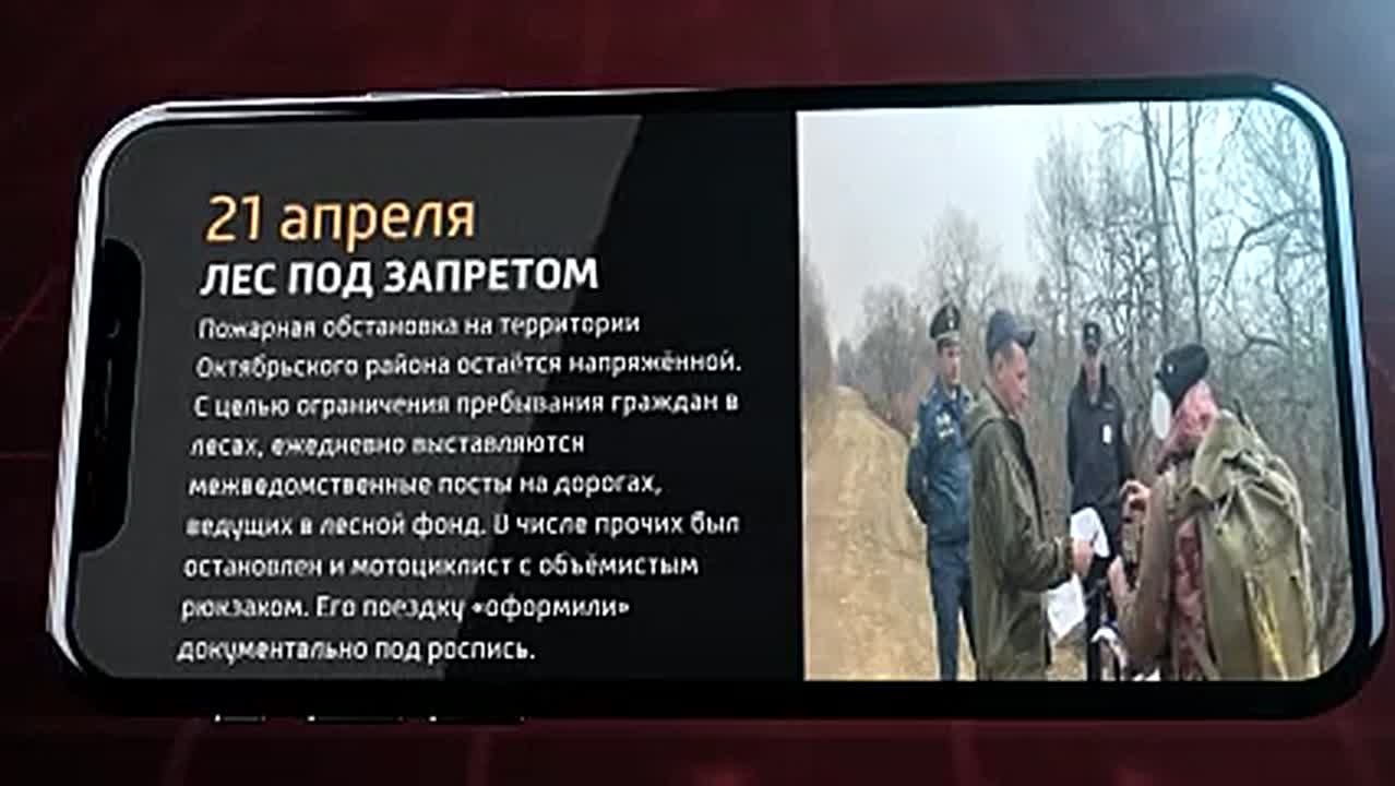 Пожарная обстановка на территории Октябрьского района остаётся напряжённой. С целью ограничения пребывания граждан в лесах, ежедневно выставляются межведомственные посты на дорогах, ведущих в лесной фонд. В числе прочих был остановлен и мотоциклист с объёмистым рюкзаком. Его поездку «оформили» документально под роспись.