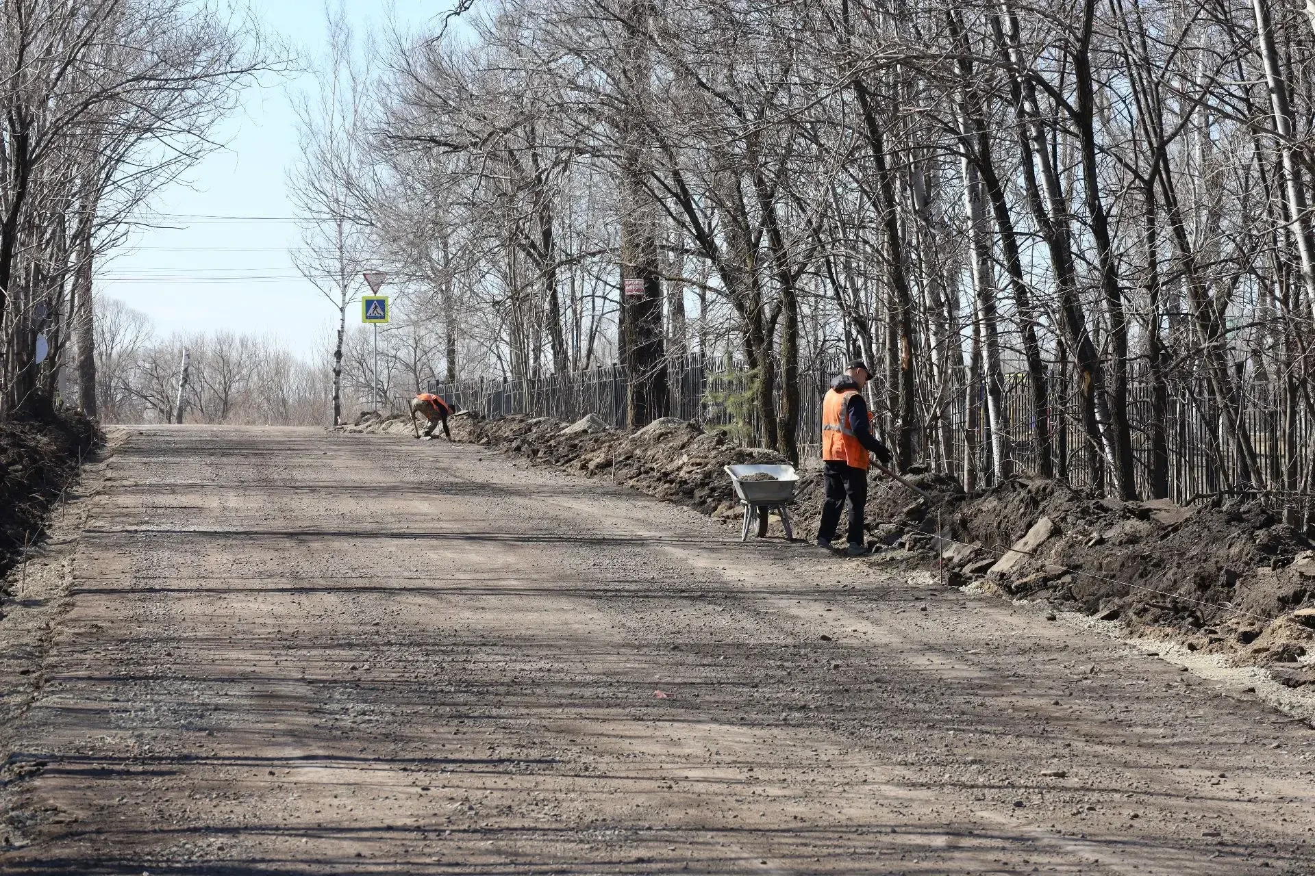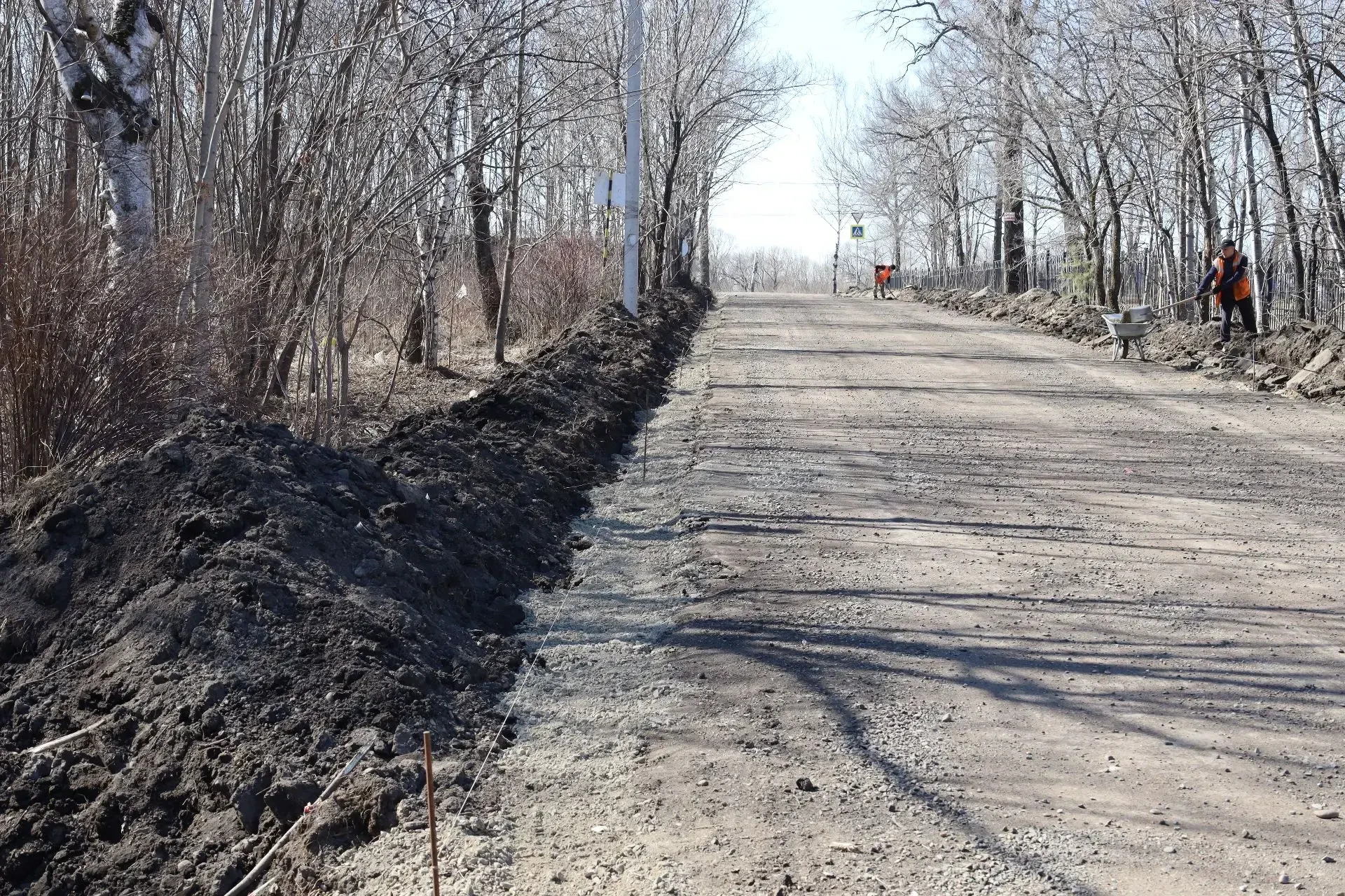 В настоящее время подрядчик проводит выборку грунта, трассировку дороги и приступил к установке бортового камня. Специалисты готовят основание дороги к асфальтированию.