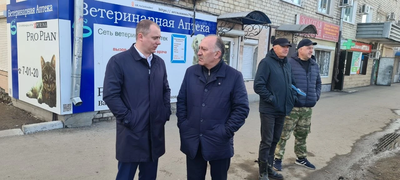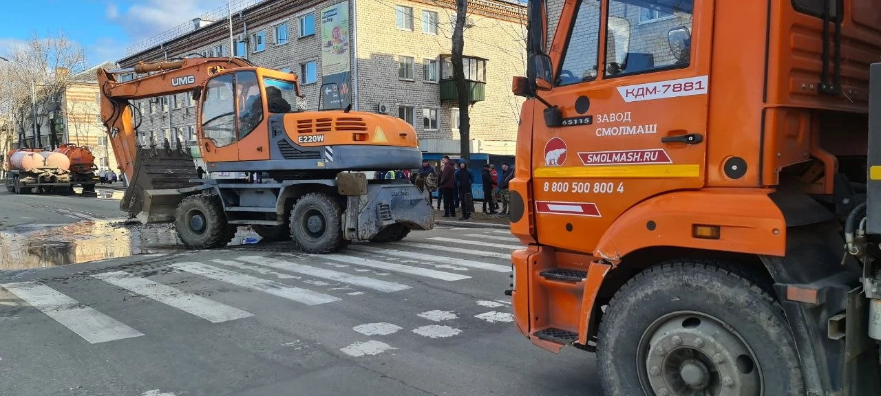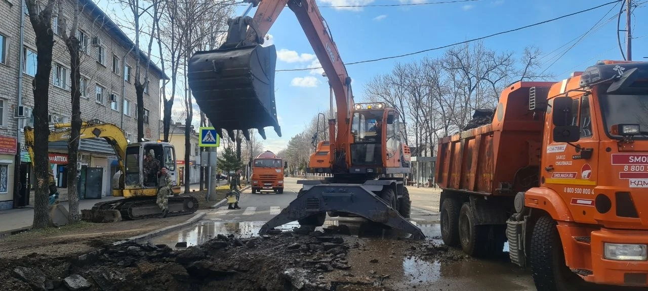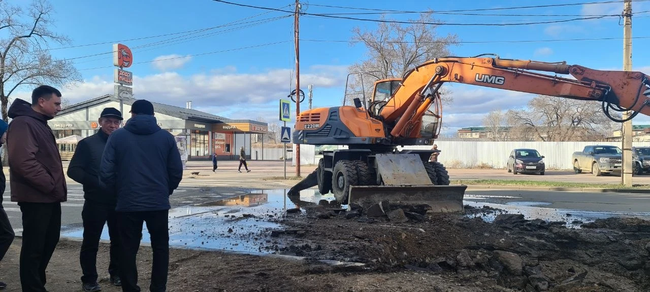 Мэр Биробиджана Алексей Кузьмин выехал на место порыва. Руководитель предприятия Андраник Авдалян доложил о ходе работ: место порыва обнаружено, после вскрытия грунта начнут замену участка трассы.