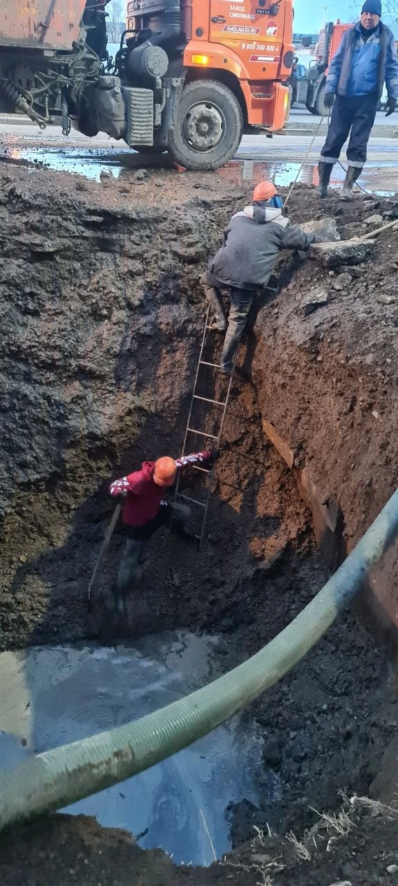 Земляные работы проведены, место порыва обнаружено. Аварийная бригада ГП ЕАО "Облэнергоремонт плюс" откапывает трубуРядом с домом по ул.Шолом-Алейхема N 41 организован подвоз воды#мэриябиробиджана#ЖКХ#авария