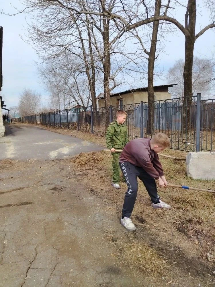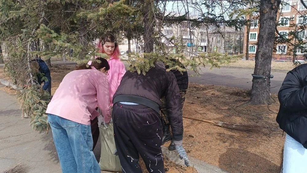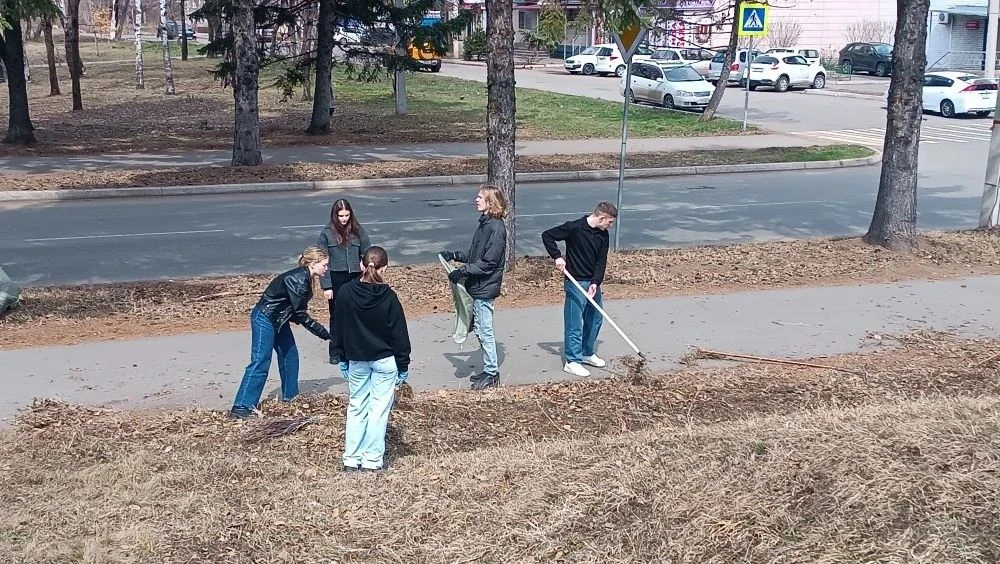 В разных районах Биробиджана ребята убирали прошлогоднюю листву, собирали мусор, приводили в порядок зеленые зоны. Кто-то работал возле своей школы, кто-то вышел в парк, кто-то помогал на детской площадке.